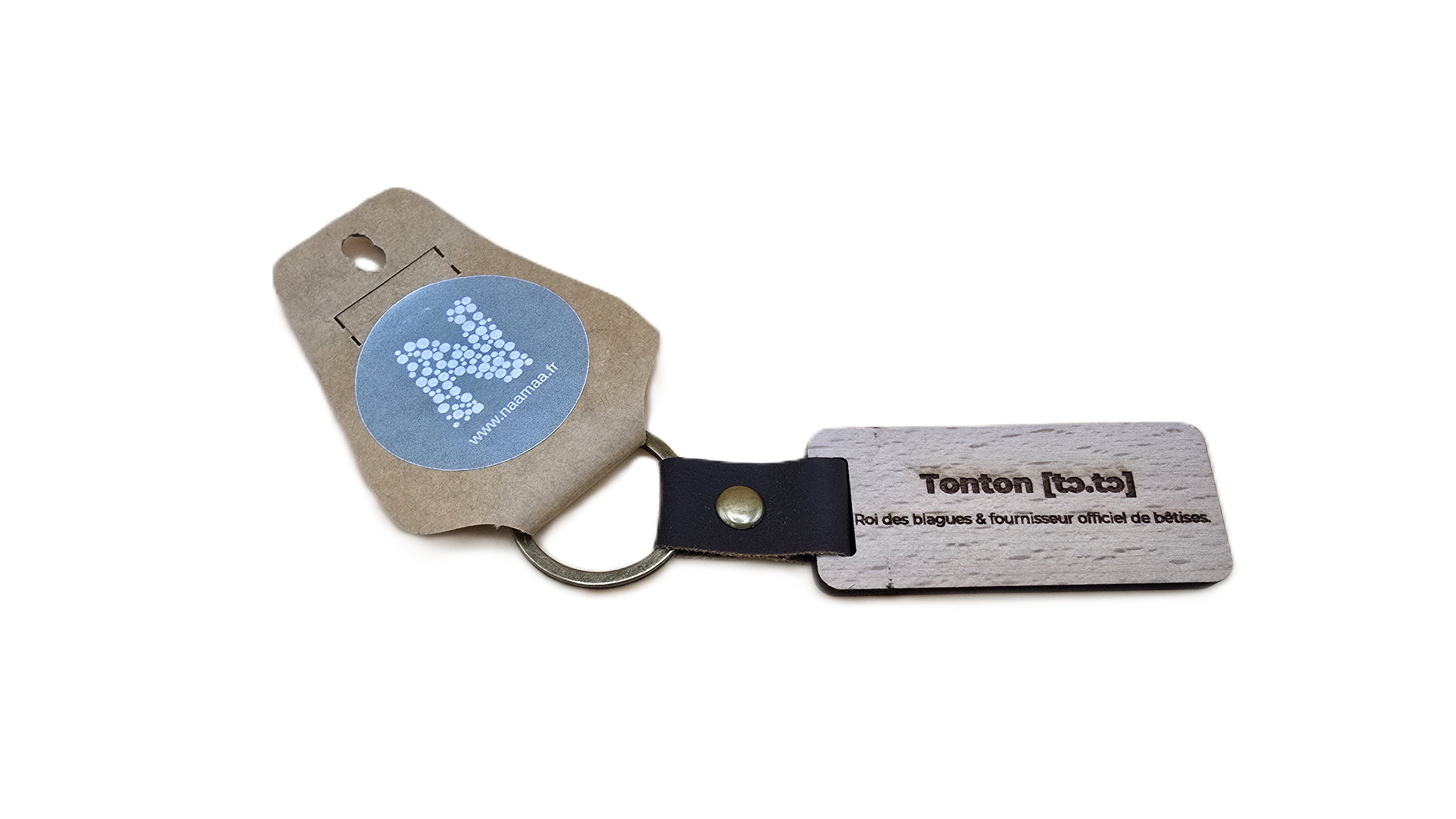 Un porte-clé en bois gravé dédié aux tontons, symbole de complicité, d’humour et de présence. Un petit cadeau utile et plein de sens.